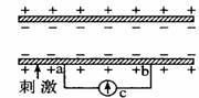 28.右图为从蛙后肢上分离的坐骨神经的示意图,若在电极a的左侧给一适当的刺激,则