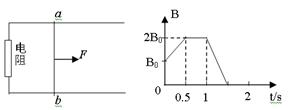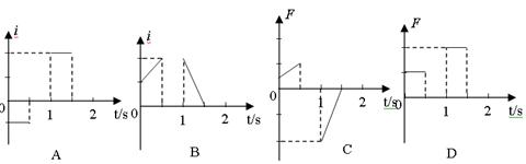 5 如图所示,位于同一水平面内的,两根平行的光滑金属导轨,处在匀强磁场中,磁场方向垂直于导轨所在平面,导轨的一端与一电阻相连,具有一定质量的金属杆ab放在导轨上并与导轨垂直,当磁场的磁感应强度B随时间t如图变化时(规定垂直纸面向里的磁场方向为正),用一平行于导轨的力F向左或向右拉杆ab,使它保持静止。若规定由a→b方向通过杆的感应电流为正,向右的拉力为正,则能反映通过杆的感应电流I和拉力F随时间t变化的图线是( )