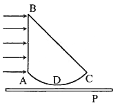 ABC=45°;ADC为一圆弧,其圆心在BC边的中点。此玻璃的折射率为1.5。P为一贴近玻璃砖放置的、与AB垂直的光屏。若一束宽度与AB边长度相等的平行光从AB边垂直射入玻璃砖,则