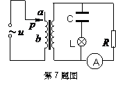 D.P固定在a点不移动,原线圈改接u=311sin200πt V的电压,灯泡亮度不变