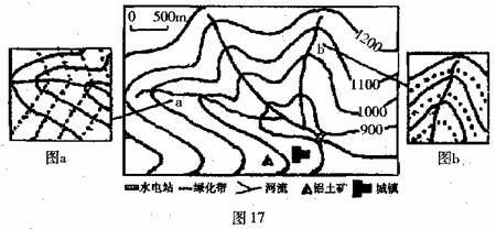 28.读图17“我国某地区的等高线示意图”,回答下列问题。(11分)