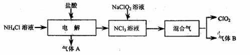 二氧化氯(ClO2)是一种在水处理等方面有广泛应用的高效安全消毒剂。实验室以NH4Cl、盐酸、NaClO2(亚氯酸钠)为原料制备ClO2的流程下如下: