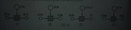 16.图10为“工业区位选择的四种模式图”,图中圆圈大小表示各因素对工业区位选择影响的强弱。下列工厂与图示工业区位选择类型相符的是