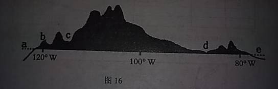 图16是“某大洲沿35º纬线的地形剖面示意图”。读图回答25-26题。![]()
