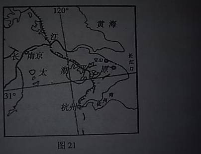 (2)图21所示地区的农业地域类型主要是 ,相对于图20所示地区其生产的最主要优势自然条件是 。(2分)
