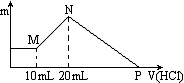 30.(4分)把由氢氧化钠、氯化铝、氯化镁三种固体组成的混合物,溶于足量水中后有1.16克白色沉淀,在所得浊液中,逐滴加入1.0mol/L的盐酸中,加入盐酸的体积(V)与生成沉淀的质量(m)关系如图所示: