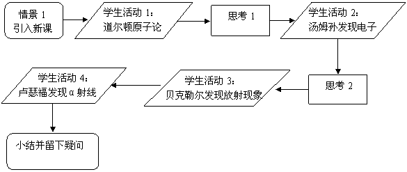 本课从科学家探索原子结构奥秘的历史阶段与研究过程出发,以学生发展为本,以激发学生的学习热情为主。以初中原子结构知识为基础,在更深层次上认识原子结构,本课起到衔接初高中学习的承前启后之作用。主要以学生的展示活动为主,由学生分组代表不同时期的科学家,向大家展示其科学发现。课前分配好任务,让大家做好预习工作,教师只做连接、指导和总结,最后归纳出科学研究方法的一般规律。