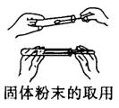 (1)粉末状固体的取用:①用药匙(或纸槽) ②横、伸、竖、抖