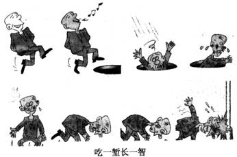 16.漫画中的人“吃一堑”并没有“长一智”,是因为他( )