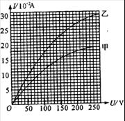 12.如图所示为甲、乙两灯泡的I一U图象.根据图象,计算甲、乙两灯泡并联在电压为220V的电路中,实际发光的功率约为( )