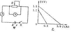 (1)用图10-12甲所示的电路分别测量新旧电池的电动势和内阻,并把测量结果描绘成乙图所示的图像。由图像可知:新电池的电动势El= V, 内阻r1= Ω;旧电池的电动势E2= V,内阻r2= Ω.