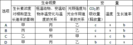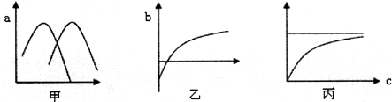 12.下表是对甲、乙、丙图所示的生命现象及a、b、c所表示变量的分析,