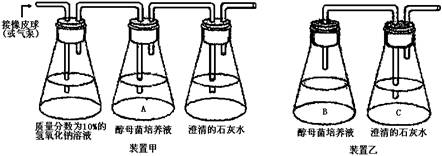 A.装置甲是对照组   B.装置乙应在C处检测是否有酒精生成