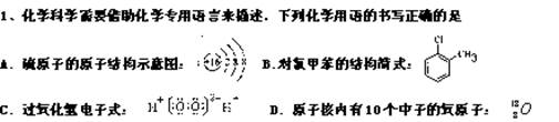 1、化学科学需要借助化学专用语言来描述,下列化学用语的书写正确的是 D