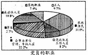 右图为2003-2008年中国共产党党员职业情况。由图可以看出中国共产党
