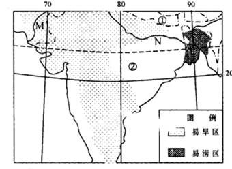 36.(36分)读世界某地区旱涝灾害分布图,回答问题。