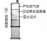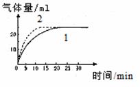 8、将一个土豆(含有过氧化氢酶)切成大小和厚薄相同的若干片,放入盛有一定体积和浓度的过氧化氢溶液的针筒中(如图所示),若土豆片为4片时,每隔5分钟收集一次数据,根据数据绘制出如图曲线1。则曲线2是指改变左图中何种条件后气体的收集曲线( )