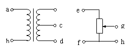 如图两电路中,当a、b两端与e、f两端分别加上220V的交流电压时,测得c、d间与g、h间的电压均为110V。若分别在c、d两端与g、h两端加上110V的交流电压,则a、b间与e、f间的电压分别为