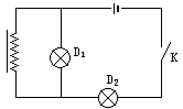 (A)K闭合瞬间,两灯同时亮,以后D1熄灭,D2变亮
