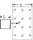 11.一个边长为L,匝数为N的正方形线圈的总电阻为R,以恒定的速率v通过磁感应强度为B的匀强磁场区域,线圈平面与磁场方向垂直,磁场宽度为b,如图所示,整个线圈通过磁场。在下列两种情况下:(1)L<b;(2)L>b,问线圈中产生的热量各是多少?
