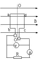 14.如图所示,交流发电机的矩形线圈abcd中,ab=cd=50cm,bc=ad=30cm,匝数n=100,线圈电阻r=0.2Ω,外电阻R=4.8Ω。线圈在磁感强度B=0.05T的匀强磁场中绕垂直于磁场的转轴OO’匀速转动,角速度ω=100πrad/s。求(1)产生感应电动势的最大值;