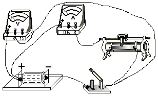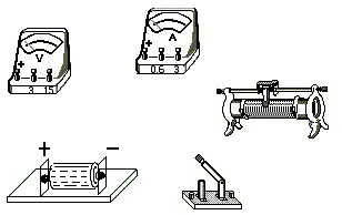待测电池,电压表(0-3V),电流表(0-0.6A),滑动变阻器(10Ω),电键,导线。