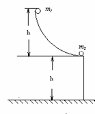 11.如图所示,在高为h的光滑平台上放一个质量为m2的小球,另一个质量为 m1的球沿光滑弧形轨道从距平台高为h处由静止开始下滑,滑至平台上与球m2发生正碰,若m1= m2,求小球m2最终落点距平台边缘水平距离的取值范围。