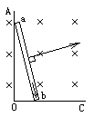如图所示,AOC是光滑的直角金属导轨,AO沿竖直方向,OC沿水平方向,ab是一根金属直棒,如图立在导轨上,它从静止开始在重力作用下运动,运动过程中b端始终在OC上,a端始终在AO上,直到ab完全落在OC上。整个装置放在一匀强磁场中,磁场方向垂直纸面向里,则ab棒在运动过程中