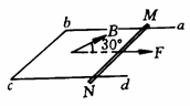 水平放置的金属框架abcd,宽度为0.5m,匀强磁场与框架平面成30°角,如图所示,磁感应强度为0.5T,框架电阻不计,金属杆MN置于框架上可以无摩擦地滑动,MN的质量0.05kg,电阻0.2Ω,试求当MN的水平速度为多大时,它对框架的压力恰为零,此时水平拉力应为多大?