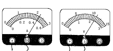15.用伏安法测金属丝的电阻,如图所示是一次测量时电表的示数,其中安培表的示数为________;伏特表的示数为________。