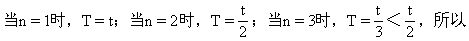 t'= nT + t2。此处,为了题目简明起见,题文中用了“第一次”和“最短时间”等字样。否则就无法比较两个过程所用时间的长短。