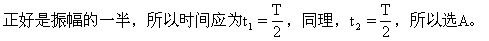 [正确解答] 方法一:用图象法,画出x-t图象,从图象上,我们可以很直观地看出:t1<t2,因而正确答案为:B。