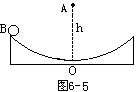 例5 如图6-5所示,光滑圆弧轨道的半径为R,圆弧底部中点为O,两个相同的小球分别在O正上方h处的A点和离O很近的轨道B点,现同时释放两球,使两球正好在O点相碰。问h应为多高?