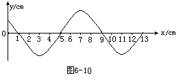 传到P点,所以画出如图6-7所示的波形图。因为波源在原点,波沿x轴正方向传播,所以可判定,P点开始振动的方向是沿y轴正方向(即向上)。