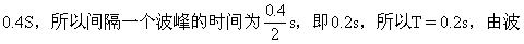 (2)实际上“相继出现两个波峰”应理解为,出现第一波峰与出现第二个波峰之间的时间间隔。因为在一个周期内,质点完成一次全振动,而一次全振动应表现为“相继出现两个波峰”,即T=0.4s。则