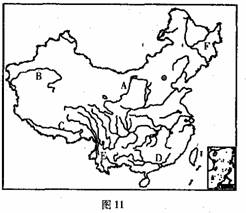 10.图中B附近地区的主要粮食作物和经济作物是 ( )