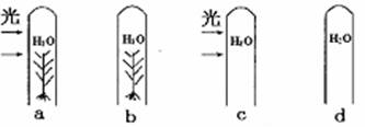 4.欲通过观察倒置的装有水生植物和水的试管中有无气泡产生,来验证植物的光合作用产生了氧气。下列四个倒置的试管中,最佳设计的一组是 ( )