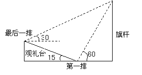 在坡度为15°的观礼台上,某一列座位与旗杆在同
