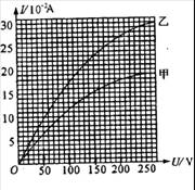 12.如图所示为甲、乙两灯泡的I一U图象.根据图象,计算甲、乙两灯泡并联在电压为220V的电路中,实际发光的功率约为( )