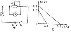 (1)用图10-12甲所示的电路分别测量新旧电池的电动势和内阻,并把测量结果描绘成乙图所示的图像。由图像可知:新电池的电动势El= V, 内阻r1= Ω;旧电池的电动势E2= V,内阻r2= Ω.