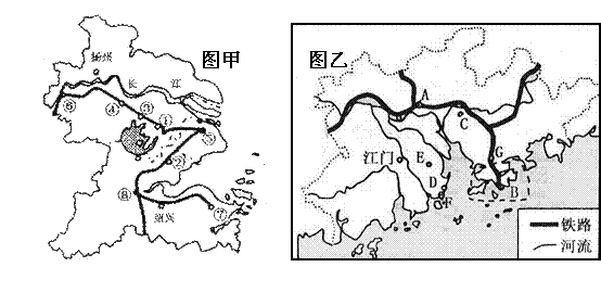 31、图甲和图乙分别是我国长江三角洲和珠江三角洲经济区示意图。读图,回答问题。(共14分)