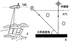(2)在B图中,传感器接受到的是地面反射或辐射的电磁波信息,在这个遥感过程中,传感器之所以能够对地面物体进行分辨,其原理是