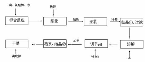 (5)生产中,如果省去“酸化”、“逐氯”、“结晶①、过滤”这三步操作,直接用试剂X调整反应后溶液的pH,对生产碘酸钾有什么影响?