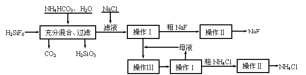 有关物质在水中溶解度分别为:氯化铵:10℃时33.3 g、20℃时37.2 g、30℃时41.4g;氟化钠:20℃时4 g;氟硅酸钠微溶于水。