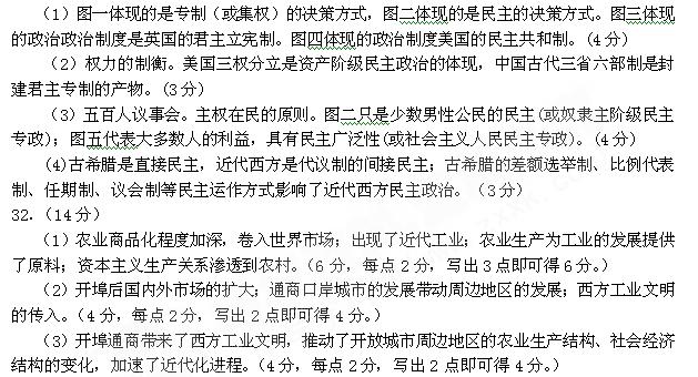 福建省福州八中2010届高三毕业班第三次质检 历史试题参考答案及评分标准
