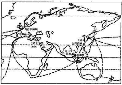 28.(18分)冬季,一艘货船从俄罗斯北部唯一的不冻港启航,沿欧亚澳航线经地中海、苏伊士运河、红海至印度洋,再向东穿过马六甲海峡经新加坡到上海,读图回答: