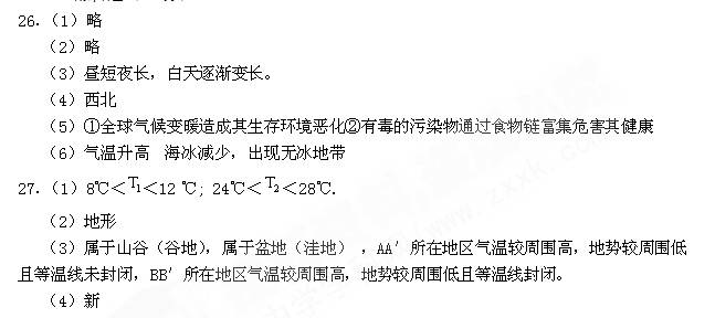 26.(20分)2008年2月28日,中国首次大学生北极考察队从北京出发,前往挪威斯瓦尔巴群岛进行为期半个月的考察。