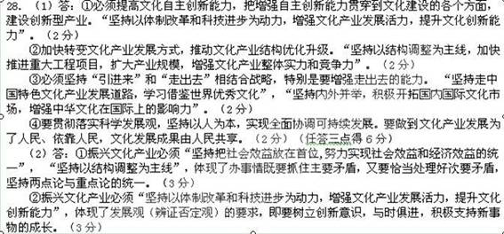 ③振兴文化产业必须“坚持内外并举,积极开拓国内国际文化市场”,“学习借鉴世界优秀文化,积极推动中华民族文化繁荣发展”。体现了事物发展是内外因共同起作用的结果。内因是事物变化发展的根据,外因是事物变化发展的条件,我们必须坚持内外因相结合的观点。(3分)④振兴文化产业必须“坚持走中国特色文化产业发展道路”,体现了矛盾的普遍性和特殊性是相互联结的,即文化产业发展要坚持世界性与民族性的统一。(3分)(任答三点得8分)