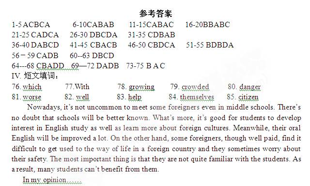 福建省福州八中2010届高三毕业班第三次质检 英语试题参考答案及评分标准