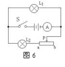 如图6所示的电路,电源电压保持不变,S闭合后,当滑片P向右滑动时 ( )